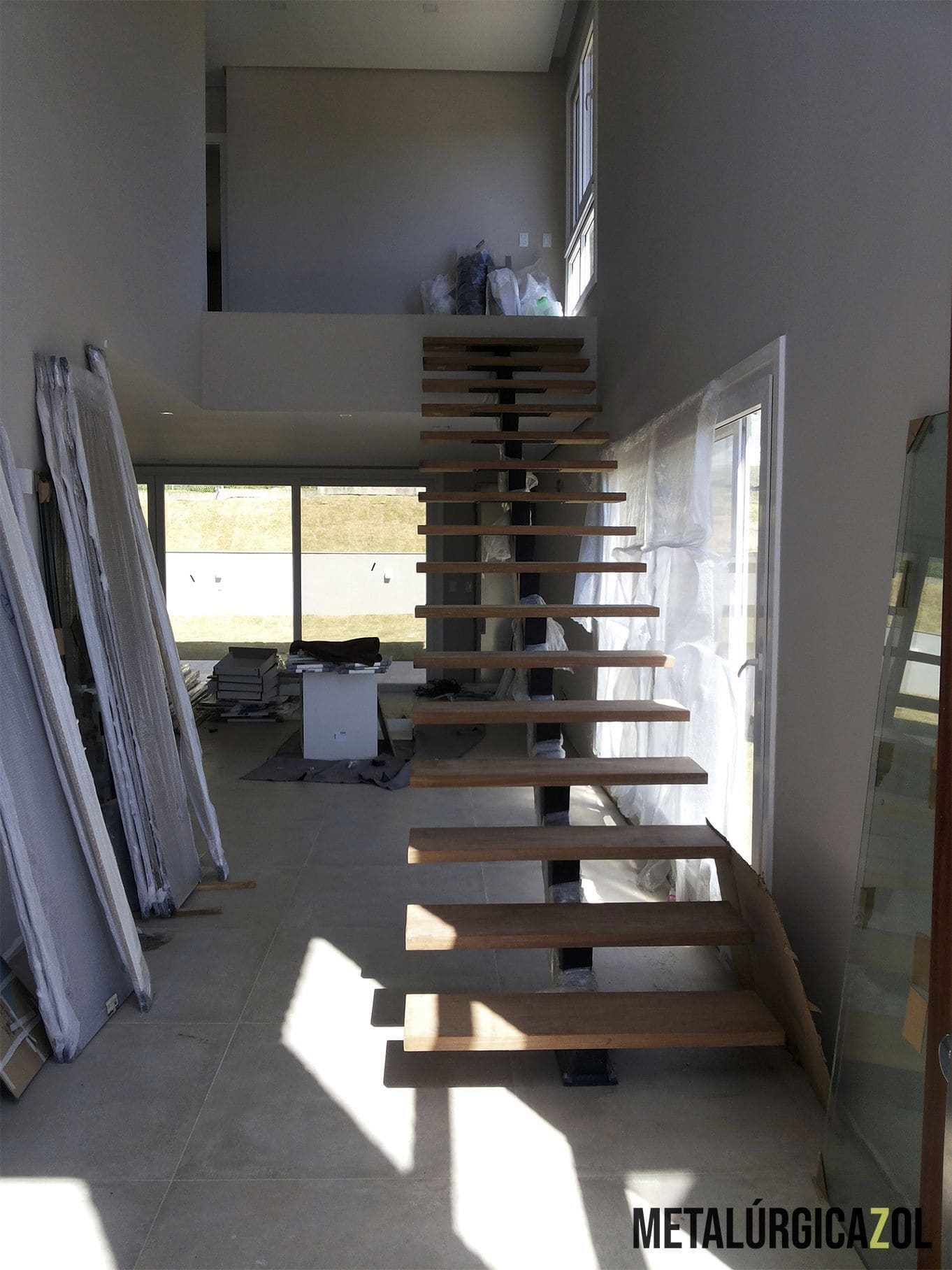 Estrutura: escada residencial com tubo central, modelo espinha de peixe